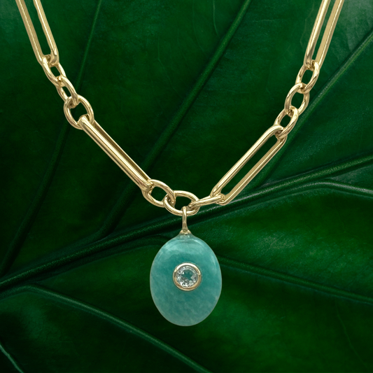 Amazonite with Blue Topaz Inlay Pendant Necklace