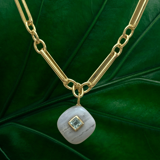 Blue Lace Agate with Blue Topaz Inlay Pendant Necklace