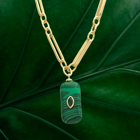 Rectangular Malachite with Green Cubic Zirconia Pendant Necklace