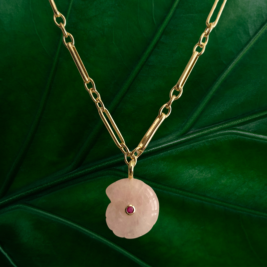 Rose Quartz with Pink Sapphire Inlay Pendant Necklace