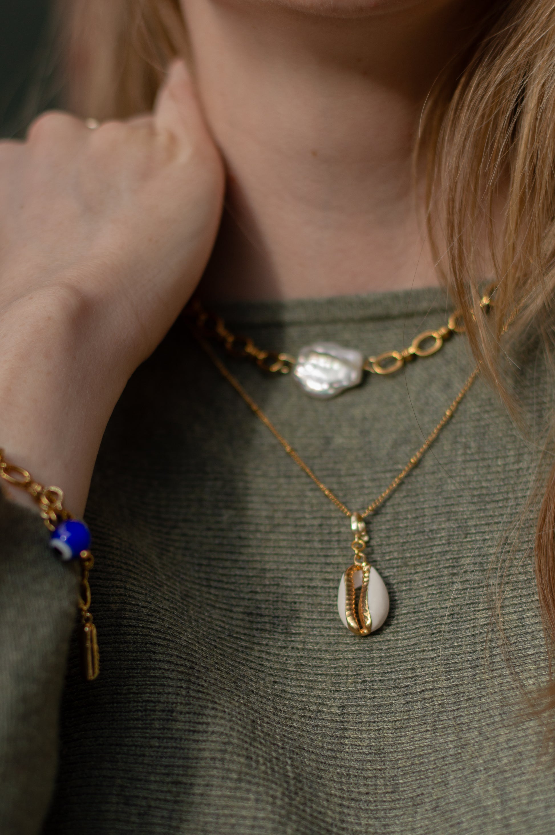 Each necklace features a unique baroque freshwater pearl at the center, showcasing its one-of-a-kind organic shape and luster. Suspended on a gold-plated chain, this piece offers effortless sophistication whether worn alone or layered with your favorite necklaces.